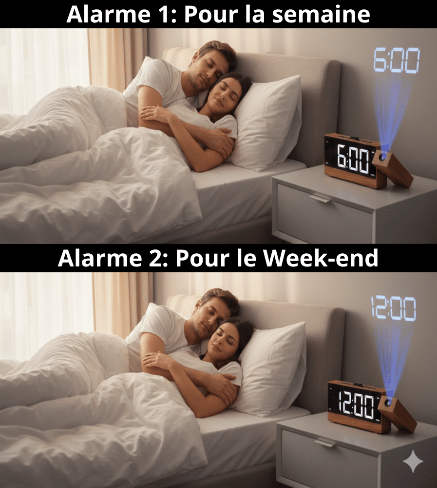 Oui, vous pouvez configurer 2 alarmes distinctes selon votre planning.